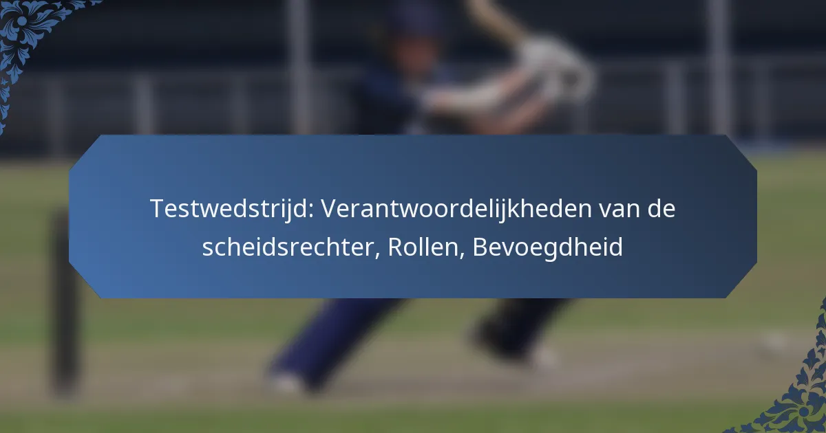 Umpires in Testwedstrijden hebben belangrijke verantwoordelijkheden die ervoor zorgen dat het spel eerlijk wordt gespeeld en volgens de vastgestelde regels. Hun rollen omvatten besluitvorming, het handhaven van voorschriften en het behouden van de integriteit van de wedstrijd, terwijl ze effectief communiceren met spelers en de wedstrijdomstandigheden beheren.